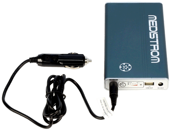 Easy to use: plug one end of the Medistrom™ Car Charger into the car cigarette lighter socket, and the other end into the "CHARGE" port of your Pilot-12 Lite or Pilot-24 Lite. The battery will charge in 3-4 hours.